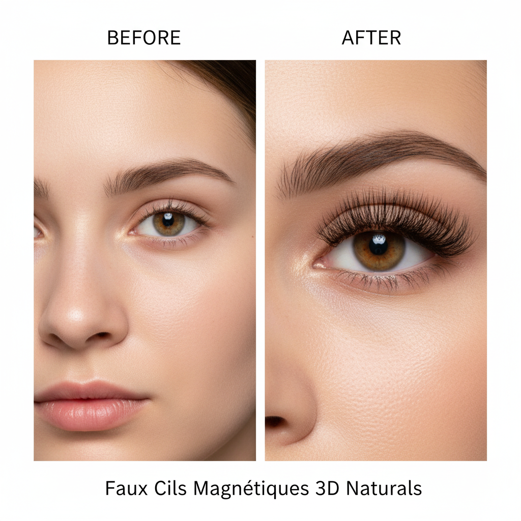 Des cils magnétiques 3D qui se fixent en 2 secondes. Look naturel, confort optimal, tenue waterproof. La beauté simplifiée pour toutes.